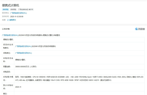 12月2日消息黄金配资网,据国内媒体报道称,近日广西民族语文研究中心发布2025年11月政府采购意向,其中5台华为台式计算机预算金额(万元)标注29500,即2.95亿元。